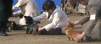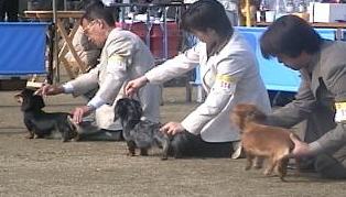 ありゃ?4頭のはずが・・・1頭いない。最初から、ジャッジが1匹ずつ見てる〜
